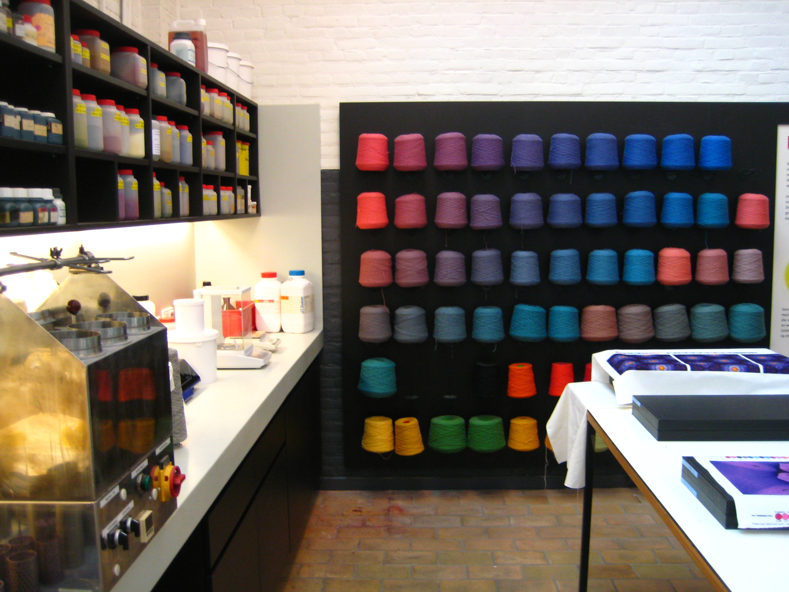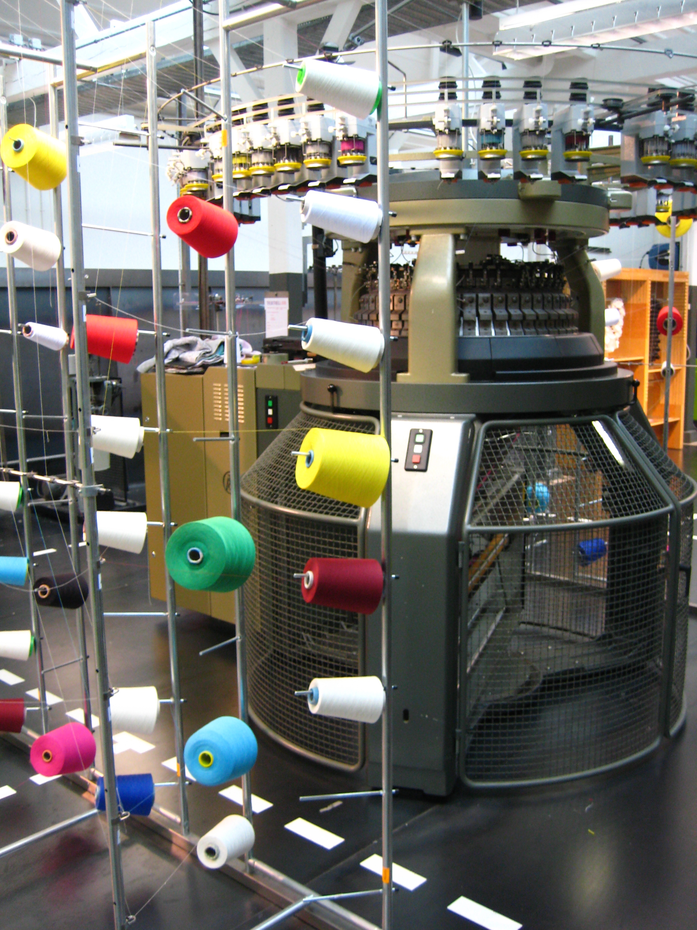 Tientallen machines staan hier dagelijks te breien, te naaien, te borduren, te laseren, te verven, te tuften en te weven. De eerste seconden, waarin de aanblik van de verzadigde kleuren van de garens en de wilde patronen van de stoffen, en het gonzende geluid van al die apparaten, zijn overweldigend.
