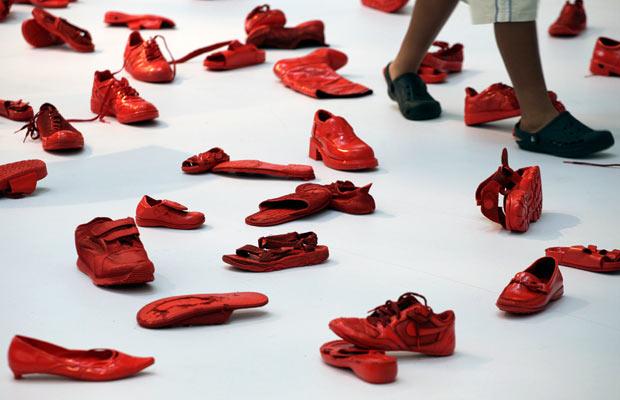 Ik zie alleen maar rode schoenen.