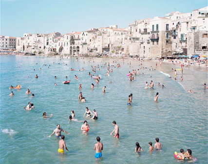 Aan de buitenkant van de stand van de immer eigentijdse en Parijs-coole Galerie du Jour Agnès B hangt een enorme strandscène van de populaire Italiaanse fotograaf Massimo Vitali. Paris Photo 2012: hallo crisis.