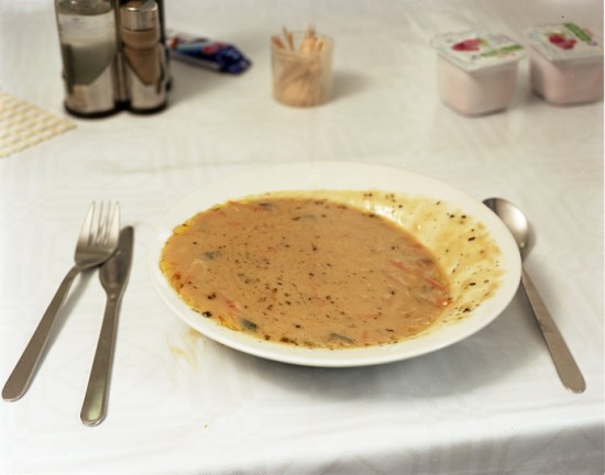 ‘Ik wil een nieuw verhaal vertellen, afhankelijk van de ruimte van het museum. En ja, daarvoor heb ik me soms laten leiden door soms museale overwegingen. Hier en daar heb ik de foto’s een beetje – niet helemaal! – losgeweekt van hun oorspronkelijke context. De meest museale opstelling is die waarin je drie monumentale foto’s van de oceaan ziet en een video van een bord soep dat danst op de golven. Ik hoop dat mensen een gevoel van eenzaamheid krijgen als ze dat zien.’