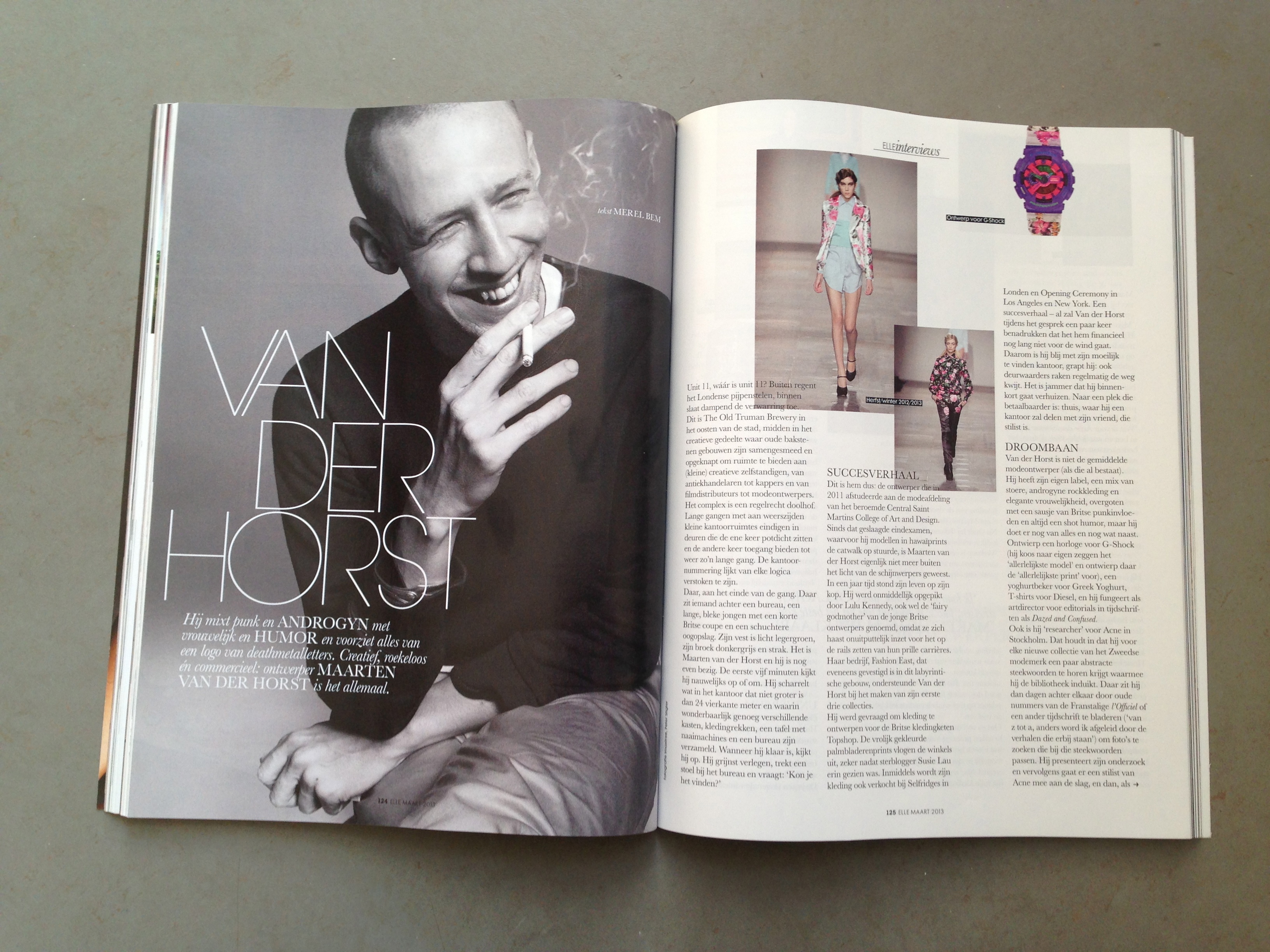 Maarten van der Horst is niet de gemiddelde modeontwerper (zo die al bestaat). Hij heeft zijn eigen label, een mix van stoere, androgyne rockkleding en elegante vrouwelijkheid, overgoten met een sausje van Britse punkinvloeden en altijd een vleugje humor, maar hij doet er nog van alles en nog wat naast. Ontwierp een horloge voor G-Shock (hij koos naar eigen zeggen het ‘aller-lelijkste model’ en ontwierp daar de ‘aller-lelijkste print’ voor), een yoghurtbeker voor Greek Yoghurt, T-shirts voor Diesel, fungeert als art director voor editorials in tijdschriften als Dazed and Confused.