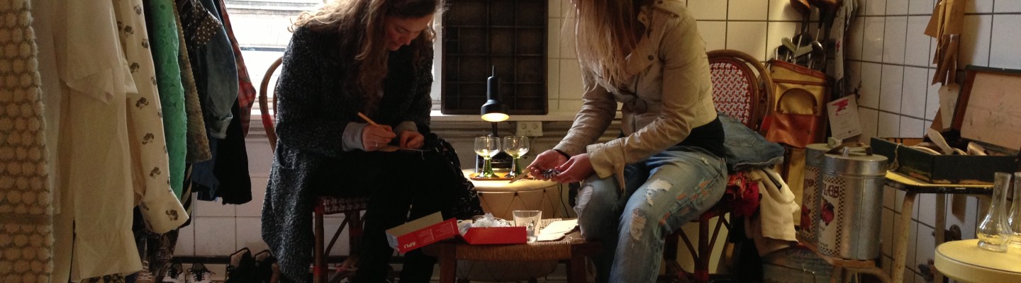 Jacometti en ’t Hoff organiseren ook ‘happenings’. Morgen bijvoorbeeld: de Trash to Treasure Market in CNCPT13 Gallery in Amsterdam. En ze zoeken een nieuwe plek voor de winkel, een die iets bereikbaarder is. Begrijpelijk, maar jammer. Zo’n oude spoelkeuken vertelt ook een verhaal. Iets met drag queens. Vraag maar aan Caroline van ’t Hoff.