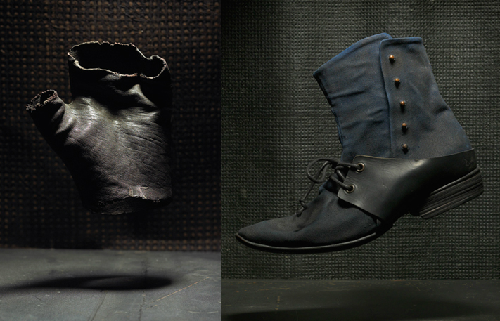 ‘Ik zie schoenen als een metafoor voor hoe je door het leven gaat’, zegt hij. ‘Welke stappen zet je en waarom?’ Daarom gebruikt hij alleen leer dat doorleefd is, dat littekens heeft, waaraan je kunt zien dat het beest een leven heeft gehad. ‘Ik maak schoffieschoenen. Ze zijn rimpelig, zien eruit alsof ze 200 jaar onder de grond hebben gelegen.’