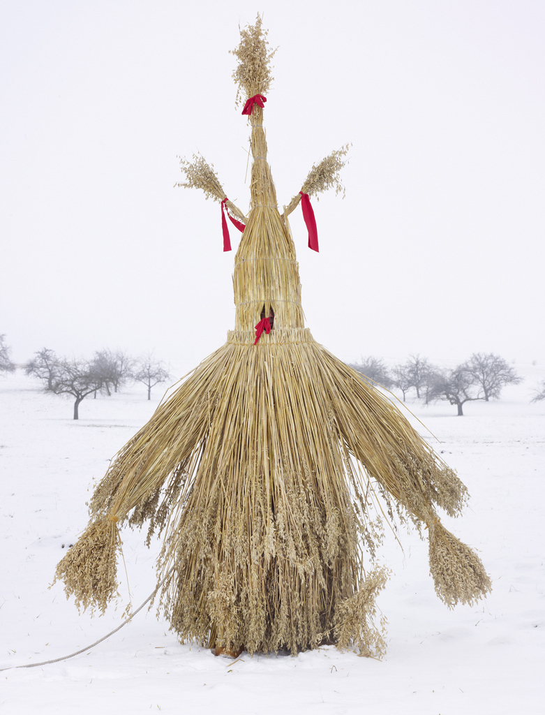 Fréger legde al die primitieve fantasiecreaturen vast, soms in een groepje bij elkaar, meestal één voor één. Het is een typologische manier van werken die hij op al zijn onderwerpen toepast, of het nu majorettes zijn of Japanse sumoworstelaars. Behalve dat zijn serie dus een antropologische inventarisatie is van de verschillende kostuums (zodat je na het bekijken weet dat alleen al een land als Bulgarije zes verschillende soorten ‘wildemannen’ kent), lijkt de fotograaf ook het moment op te zoeken waarop je als kijker vergeet dat er een mens in de uitmonstering verstopt zit.