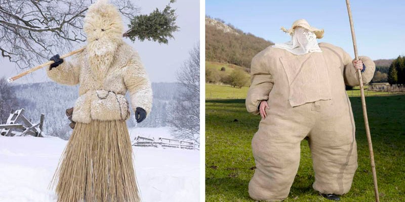 Op andere foto’s is de mens achter (of in) de wildeman onmiddellijk zichtbaar. Een Macedonische man, verkleed als een witte, gemaskerde boerenvrouw, rookt ongenaakbaar een sigaret; een Fransman met een zwart geschminkt gezicht kijkt je strak aan vanonder een woeste berenkop.