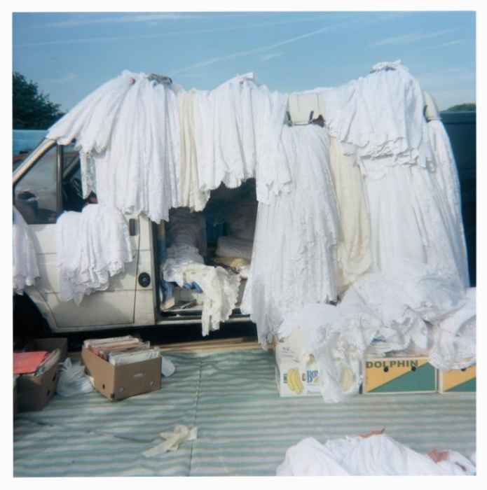 En dat gelukzalige besef begon met een nieuwe camera, vertelt de fotograaf, onderwijl nippend van een glas koffieverkeerd dat wonderbaarlijk genoeg maar niet leeg raakt. ‘Een kleine, plastic camera, een basisdingetje, zonder al te veel controle over de sluitertijd, zodat ik was overgeleverd aan het toeval. Ik vond hem ergens op die markt, Hackney Wick, en het leek of ie samenviel met de geografische plek. Voor het eerst had ik het gevoel dat ik echt reageerde op een locatie. De plek stuwde me vooruit en het was bijna alsof de foto’s zichzelf maakten. Het was behoorlijk magisch. Het is één van mijn dierbaarste herinneringen.’