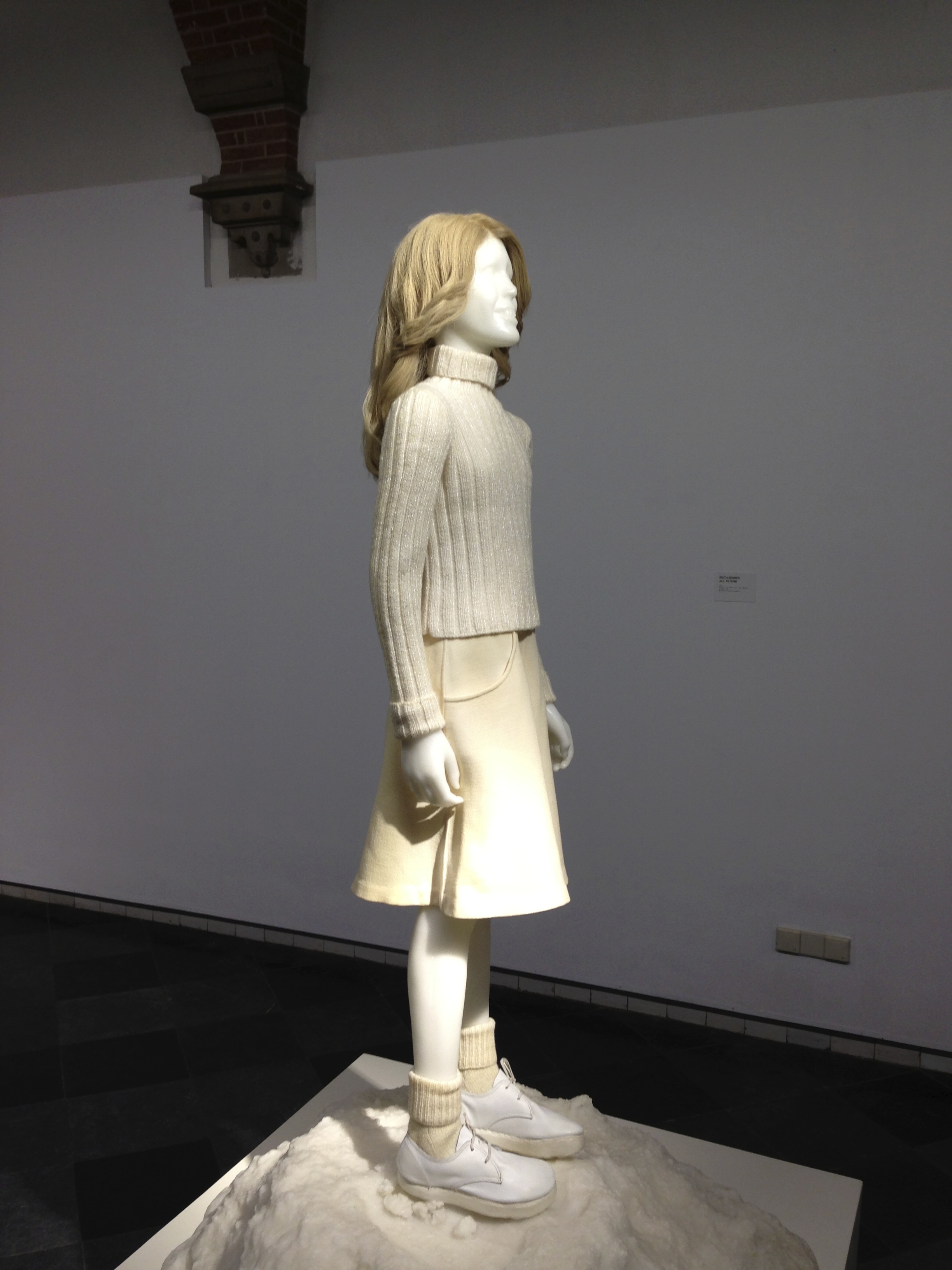 Jill Peters is een droom van polyvinyl. Sinds ik haar een paar maanden terug voor het eerst zag, is ze door mijn hoofd blijven spoken. Jill, met haar blonde Farrah Fawcett-pruik, haar grijnzende centenbakje en uitstekende voortandjes – ze blies me omver. Ze stond in de hoge gotische tentoonstellingsruimte van De Hallen in Haarlem bovenop een bergje nepijs. Ze was verblindend wit.