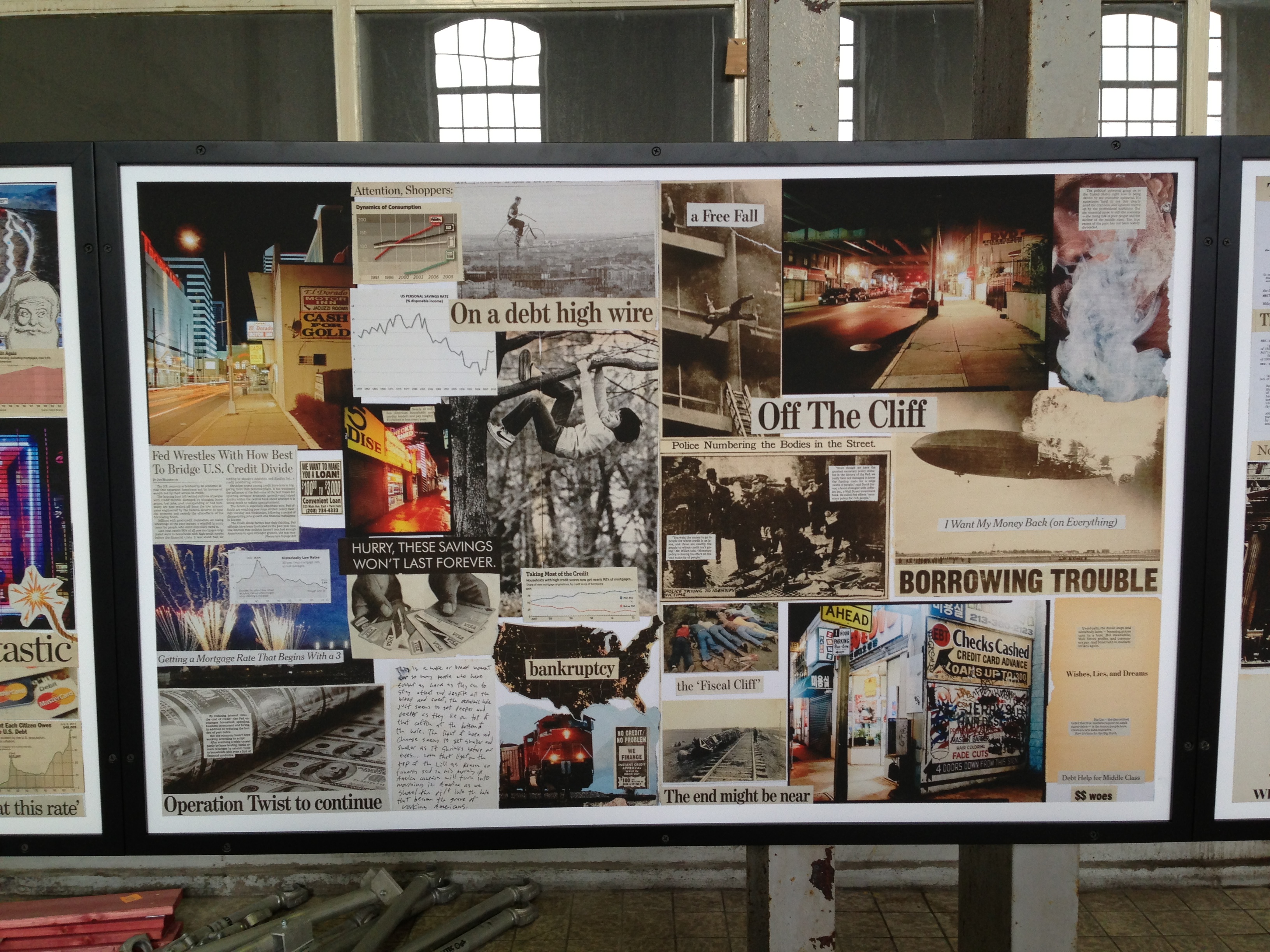 De twee hoogtepunten der verbeelding zijn afkomstig van de Britse fotograaf Louis Porter en de Amerikaan Will Steacy. De eerste putte uit het beeldarchief van een financieel dagblad uit de jaren tachtig en ging, door middel van slimme combinaties van die gruizige foto’s, op zoek naar de archetypische beeldtaal van de bankenwereld. De tweede leverde een ijzersterk staaltje af in de vorm van een meterslang lint van collages, waarvoor Steacy de post-9/11-wereld en de financiële crisis tot uitgangspunt nam en krantenkoppen en -foto’s met elkaar verbond tot één inktzwart scenario.