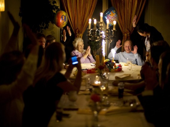 © Ilvy Njiokiktien: Riet Mohlman viert haar 90ste verjaardag samen het haar kinderen en kleinkinderen in Chinees Retaurant Wok Maxis in Warnsveld, 2013