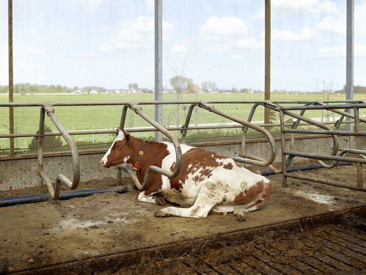 Wel permitteerde de fotograaf zich wat kleine pesterijtjes. Een koe die volgens het bijschrift op een boerderij leeft waar de beesten zes maanden per jaar buiten mogen komen, fotografeerde hij nadrukkelijk ín de stal, en niet springend in het weiland. Maar als je daar even over nadenkt, begrijp je dat Wildschut fotograaf van de duivel speelt door dezelfde tactiek toe te passen als reclamemakers die consumenten willen doen geloven dat elk pak melk afkomstig is van zo’n blije grazer – maar dan omgekeerd.