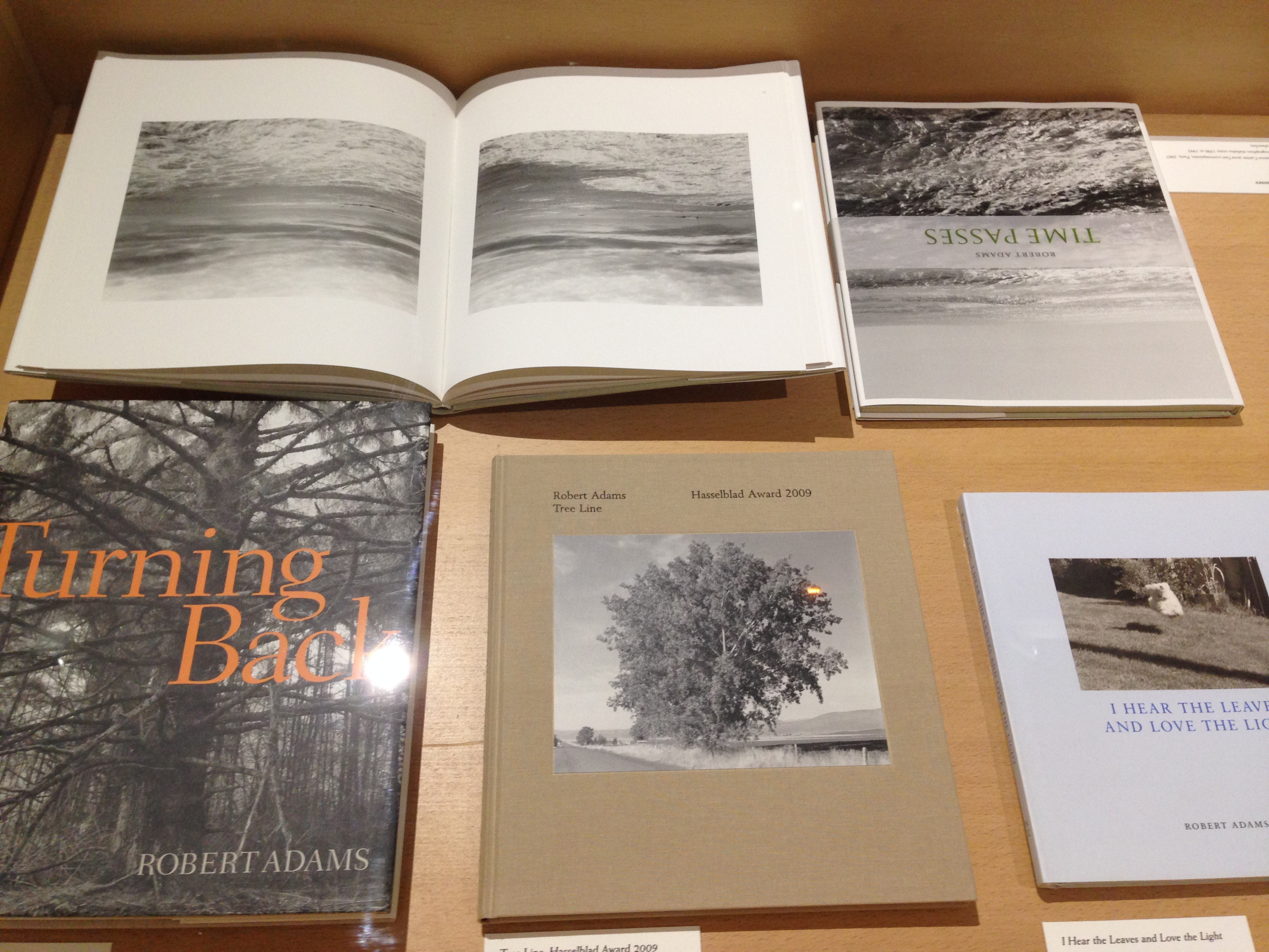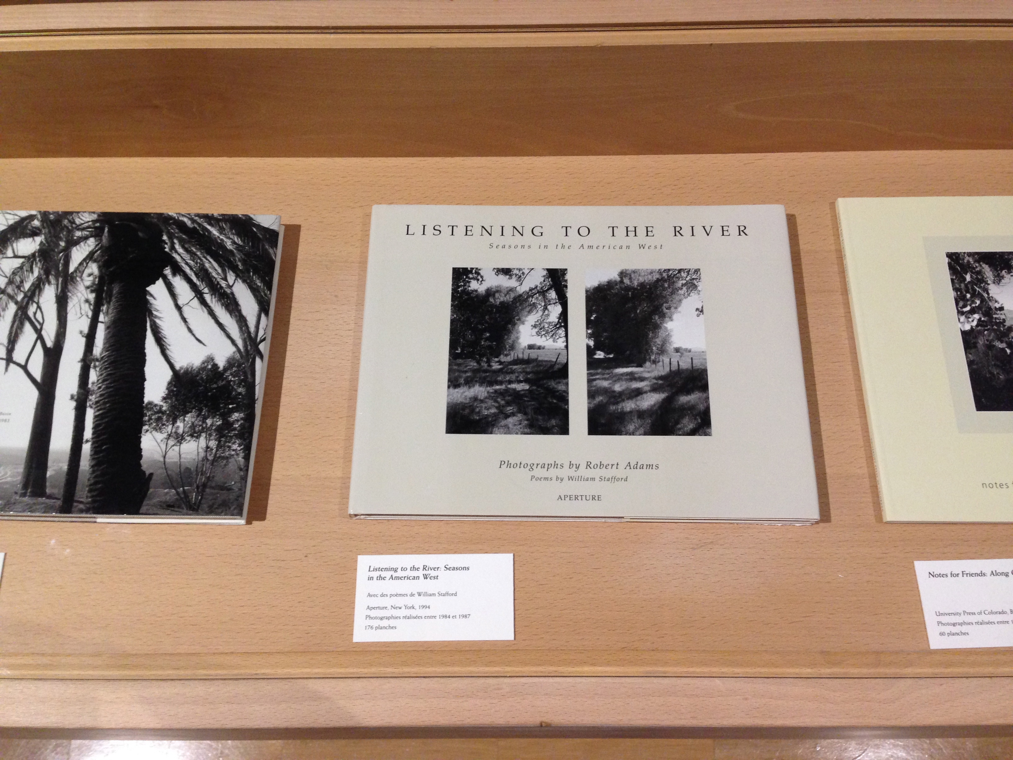 Je kunt als bezoeker ook niet anders dan dichtbij komen. Adams’ landschapsfoto’s werden niet opgeblazen, maar afgedrukt op de grootte die nodig is voor een afdruk in een fotoboek. Fotoboeken zijn voor de fotograaf, die ook een begenadigd schrijver is, gedurende zijn lange carrière altijd de primaire presentatievorm geweest. Wie de expositiezalen in het Jeu de Paume betreedt, valt steil achterover van de hoeveelheid publicaties, uitgestald in meterslange vitrines. Je kunt ze niet doorbladeren, maar het is duidelijk dat de bezoeker geacht wordt eenzelfde persoonlijke relatie aan te gaan met het werk aan de duif- en leemgrijze museummuren als hij zou doen wanneer hij thuis op de bank geconcentreerd een van die boeken zou bekijken.