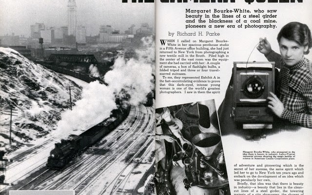 Margaret Bourke-White (1904-1971) was een avonturier. Haar c.v. als waaghals is lang en bestaat bovendien uit wapenfeiten waarin de Amerikaanse fotograaf de eerste of zelfs de enige is geweest.