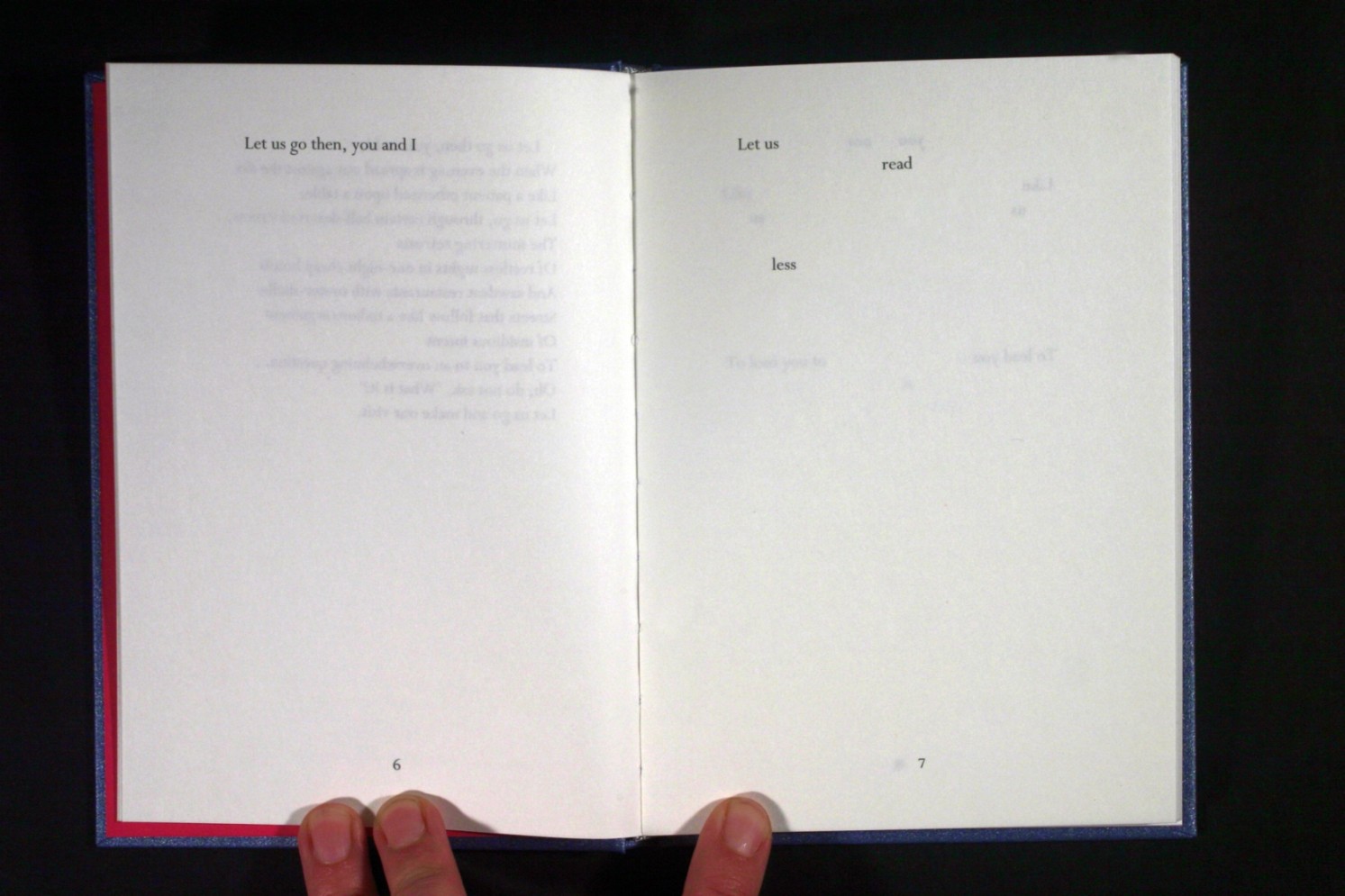 Er is een boek, haar eerste, met ‘tipp-ex-gedichten’. Tonnard nam een fragment uit een gedicht van T.S. Eliot, de beroemde toneelschrijver en literatuurcriticus. Door steeds verschillende delen van de tekst wit te maken, liet ze uit de woorden van Eliot nieuwe gedichten tevoorschijn komen. Er is een boek als een zwembad. Letterlijk: wie de pagina’s van One Swimming Pool losmaakt en op een bepaalde volgorde op de grond uitspreidt, ziet voor zich, op ware grootte, één van de zwembaden die de Amerikaanse kunstenaar Ed Ruscha fotografeerde voor zijn boek Nine Swimming Pools and a Broken Glass uit 1968.