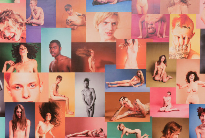 Díe beeldtaal is McGinley’s grootste valkuil, even afgezien van de vraag hoe lang hij en zijn blote dertigersvrienden nog appetijtelijk cameravlees zullen opleveren. Yearbook bijvoorbeeld, als behang uitgespreid over muren en plafonds: een verzameling studioportretten van allerhande (blote, ja tuurlijk) jongeren tegen gekleurde achterwanden. Zwart, wit, dun, dik, verlegen, ingetogen, uitbundig, brutaal – alles is vertegenwoordigd in een afstompende hoeveelheid van politiekcorrecte plaatjes, een Benetton-reclame zonder de panache van Oliviero Toscani.