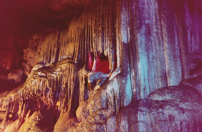 Blijf nog even in die afgelegen hooischuur wonen, Ryan McGinley! Je bent nog veel te jong om je al te settelen in de studio. Zoek de grotten van Noord-Amerika op, zoals in de magische serie Moonmilk (2009), waarin menselijke figuren opgaan in wonderlijke constellaties van steen en kunstlicht. Richt je camera op de sterrenhemel in het pijnbomenbos, op je vrienden in een boomtop, op springende lijven met bungelende piemels voor mijn part. Maar trek die deur voorlopig nog niet achter je dicht.