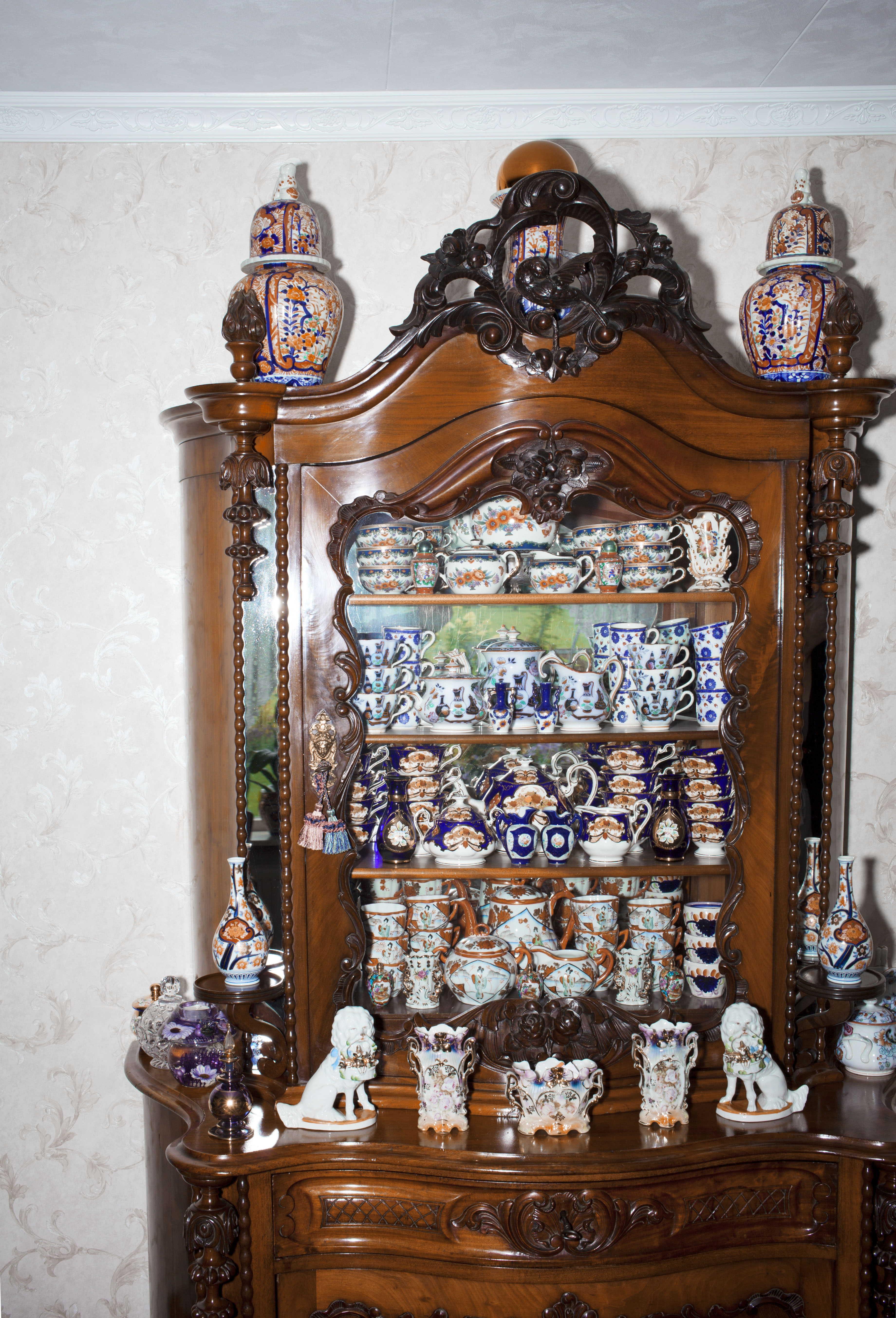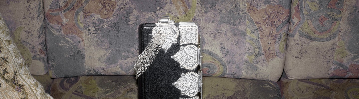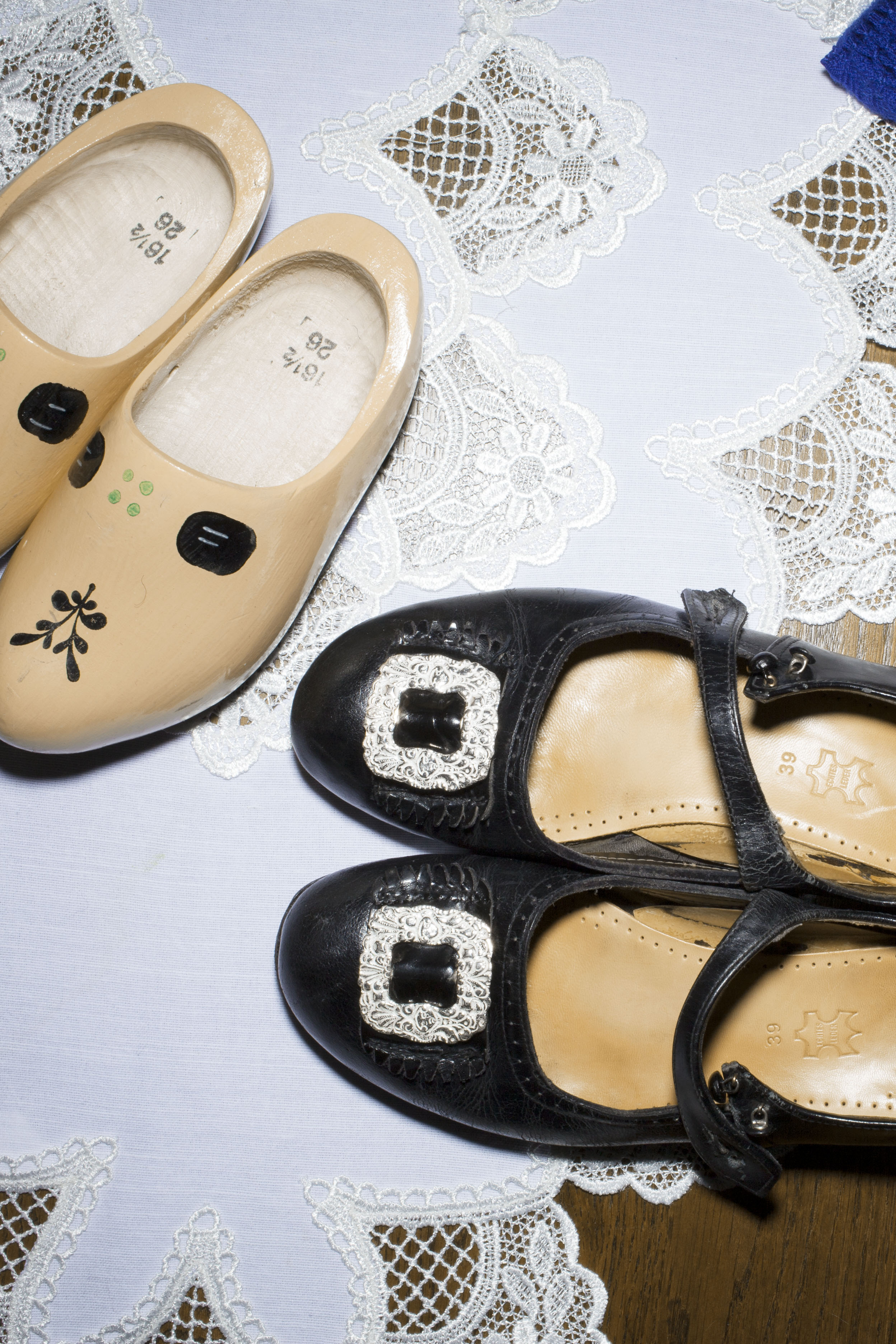 In de woonkamer verleent een houten kast onderdak aan een familie fijne witkanten kapjes. Er zitten papiertjes op gespeld, waarop geschreven staat wanneer ze voor het laatst werden gedragen. Er zijn gerimpelde boordjes met kraaltjes in exotische kleurencombinaties en blauwe en rode geruite doeken, die zo om de schouders moeten worden gedrapeerd dat de punt op de rug precies in het midden zit. Er zijn tule toefmutsen en borstrokken van zwart damast, waarin aan de achterkant kussenrolletjes werden genaaid, zodat de rok eroverheen kan golven. En het stopt niet.
