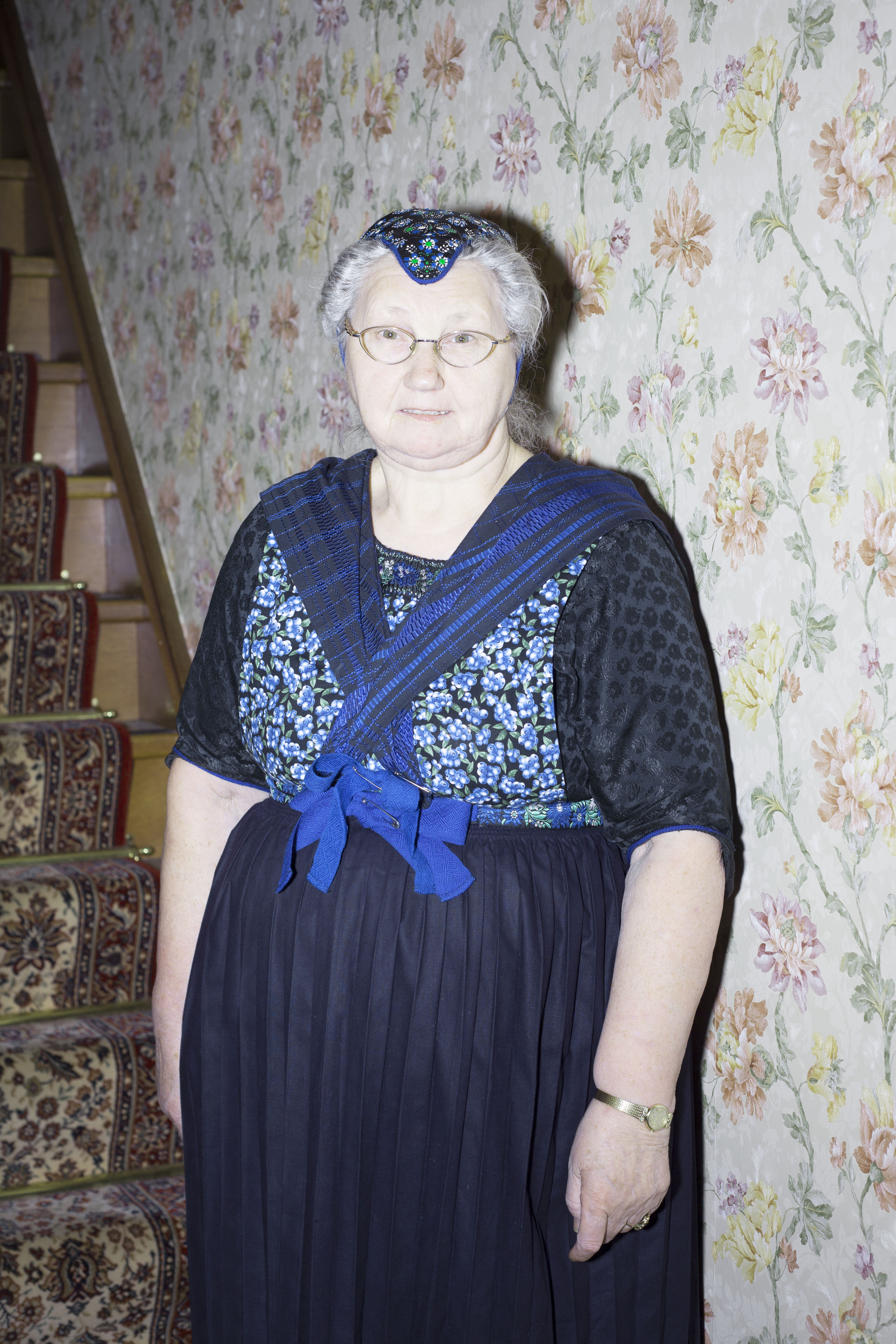 De broodnuchtere Trijntje, geboren en getogen in Staphorst (‘op Stapperst’, zoals ze zelf zegt), is één van de 500 vrouwen die nog dagelijks in traditionele Staphorster klederdracht gekleed gaat. Ze is er trots op en vindt het mooi, maar veel woorden maakt ze er niet aan vuil. Op de vraag wat haar kleding voor haar betekent, haalt ze ietwat wrevelig haar schouders op. ‘Ja nouja, het is gewoonte, hè. In de kinderwagen kreeg ik al meteen een mutsie op en mouwen aan. En met een halfjaar droeg ik de klederdracht. Dat deed iedereen op Staphorst.’