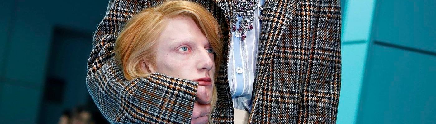 Soms roept een foto zoveel verschillende associaties op dat je, als je er toevallig een stuk over dient te schrijven, niet weet met welke je moet beginnen. Of wat de belangrijkste is. Dat probleem heb ik nu. Ik zag deze foto: een model op de catwalk voor modemerk Gucci tijdens de Fashion Week in Milaan draagt zijn eigen hoofd mee als ‘handtas’. Nu klinkt dit op papier als een zeldzaam, eenmalig beeld, niet zoiets waarvan je meteen roept: Dat zag ik eerder! Maar dat was dus precies wat er wél gebeurde. Dit is immers een modefoto en mode bestaat grotendeels bij de gratie van associatie, van het assimileren van allerhande beeldmateriaal en het reageren op andere ontwerpen en stijlen. Dat, of ik heb in mijn leven al teveel gezien.
