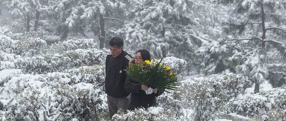 Normaal gesproken is het Chinese Qingming-festival, behalve een jaarlijkse gelegenheid om de voorouders te eren, een ode aan de lente. Begin april (het festival valt meestal op de 4e of de 5e van de maand) komt de natuur weer tot leven; de takken lopen uit, de knoppen springen open, de zon begint overuren te maken, afijn u kent het. De twee of drie vrije dagen zijn voor veel Chinezen, zo lees ik, een welkome minivakantie, waarin ze eropuit trekken en ’s avonds vliegers met lantaarntjes eraan oplaten. Op de dag van het festival zelf trekken ze naar de begraafplaatsen om de grafstenen van hun dode familieleden schoon te vegen en bloemen neer te leggen. Wat zullen ze in Beijing en omstreken gebaald hebben dit jaar: precies op 5 april sneeuwde het, de Jiu Gong Shan-begraafplaats ging schuil onder een wit dekentje. En aan de andere kant: wat zal de Oekraïense persfotograaf Roman Pilpey stilletjes hebben gejuicht.