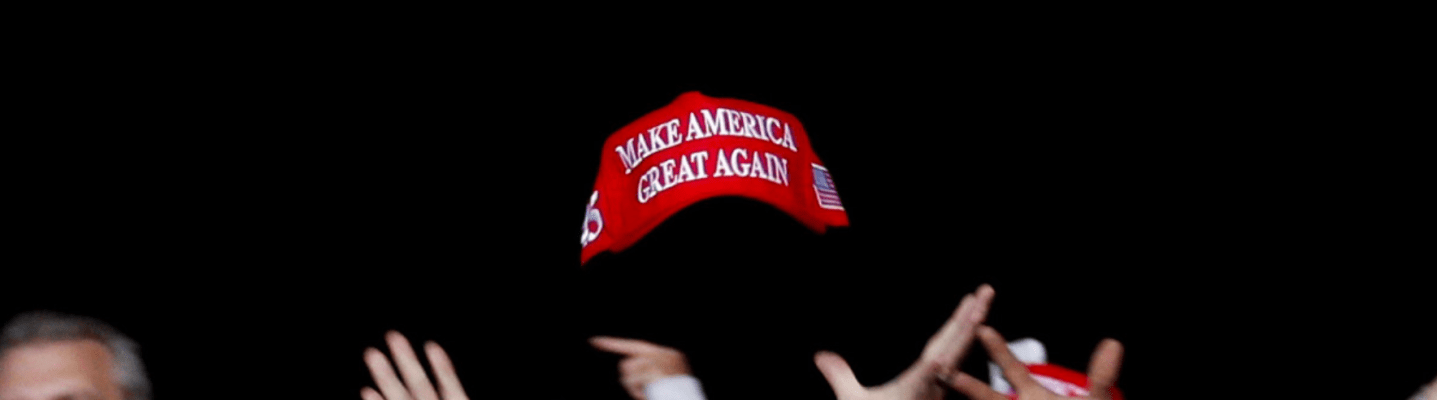 In de wereld van Trump staan mensen die beter verdienen verwachtingsvol naar iets te grijpen wat nooit binnen hun bereik zal zijn. Dat is wat ik zie in deze foto van Tom Brenner. Anderen zien in dit vliegende petje juist een uiting van triomf, een toekomst vol voorspoed en welvaart die met ‘four more years’ voor het grijpen ligt.